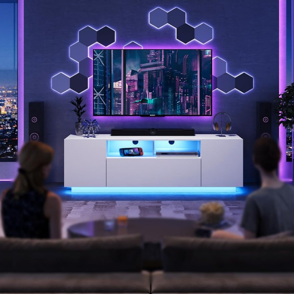 TV Stand For 65 Inch TV, Modern Entertainment Center With LED Light, 58\